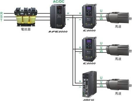 支持并接多個DC bus之交流驅動器,如下圖: