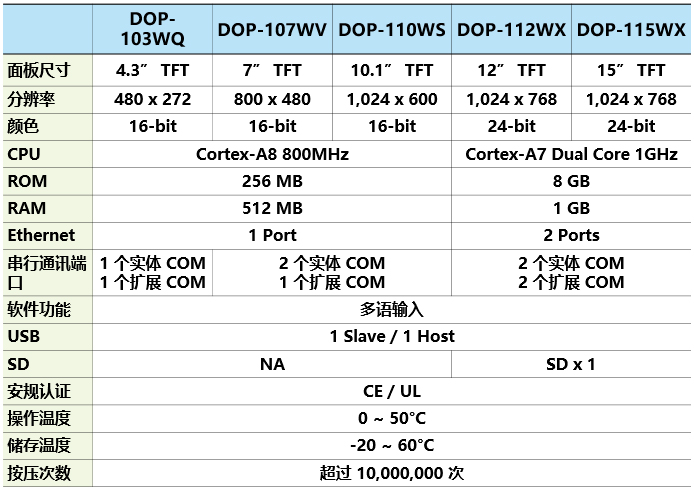 - 多尺寸選擇:4.3” / 7” / 10.1” / 12” / 15”
