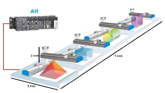 AH500的運(yùn)動(dòng)控制功能,可實(shí)現(xiàn)任意三軸直線插補(bǔ)、任意兩軸圓弧插補(bǔ)、及任意三軸螺旋插補(bǔ)與連續(xù)插補(bǔ)功能,透過(guò)臺(tái)達(dá)DMCNET高速通訊網(wǎng)絡(luò)架構(gòu),更可達(dá)到1ms的指令周期內(nèi)12軸同動(dòng)或4組3軸同動(dòng)插補(bǔ)功能。無(wú)論是復(fù)雜的過(guò)程控制或是精密的運(yùn)動(dòng)控制需求,都能透過(guò)AH500來(lái)實(shí)現(xiàn),有效應(yīng)用于各種產(chǎn)業(yè)機(jī)臺(tái),如建材機(jī),經(jīng)編機(jī),食品包裝機(jī)等等。